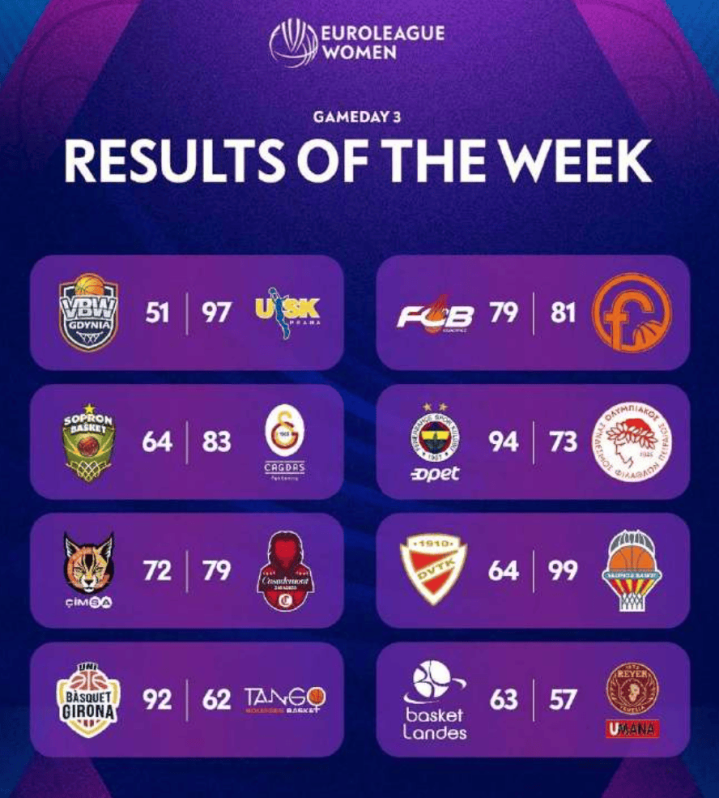 虎扑10月26日讯2025-26赛季FIBA女篮欧洲联赛常规赛第一阶段第3轮战报,梅斯曼登场,费内巴切队大胜对手,库利巴利与约塞特合砍49分,助力赫罗纳队三连胜。